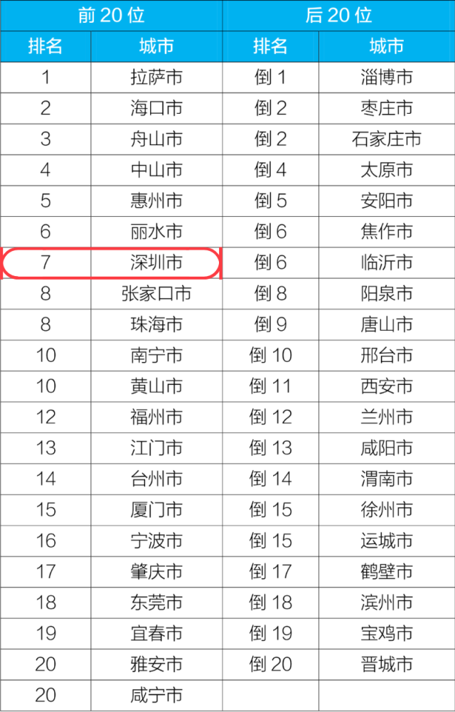 深圳3月空氣質(zhì)量全國(guó)排名第7