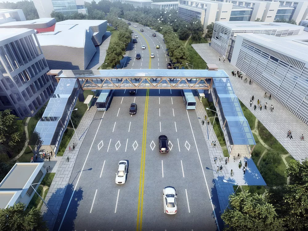 跨越南山區(qū)沙河西路,西接大沖片區(qū),東接沙河西生態(tài)長(zhǎng)廊,橋長(zhǎng)約113米,橋面凈寬約4.3米,主橋共4跨。天橋設(shè)計(jì)容景觀、造型、燈光、周邊環(huán)境于一體,設(shè)置無(wú)障礙觀光電梯,采用鋼箱梁及花崗巖面磚鋪裝、綠化自動(dòng)滴灌等。天橋的建設(shè)將大大縮短居民繞行時(shí)間,對(duì)完善周邊居民出行環(huán)境具有重要意義。