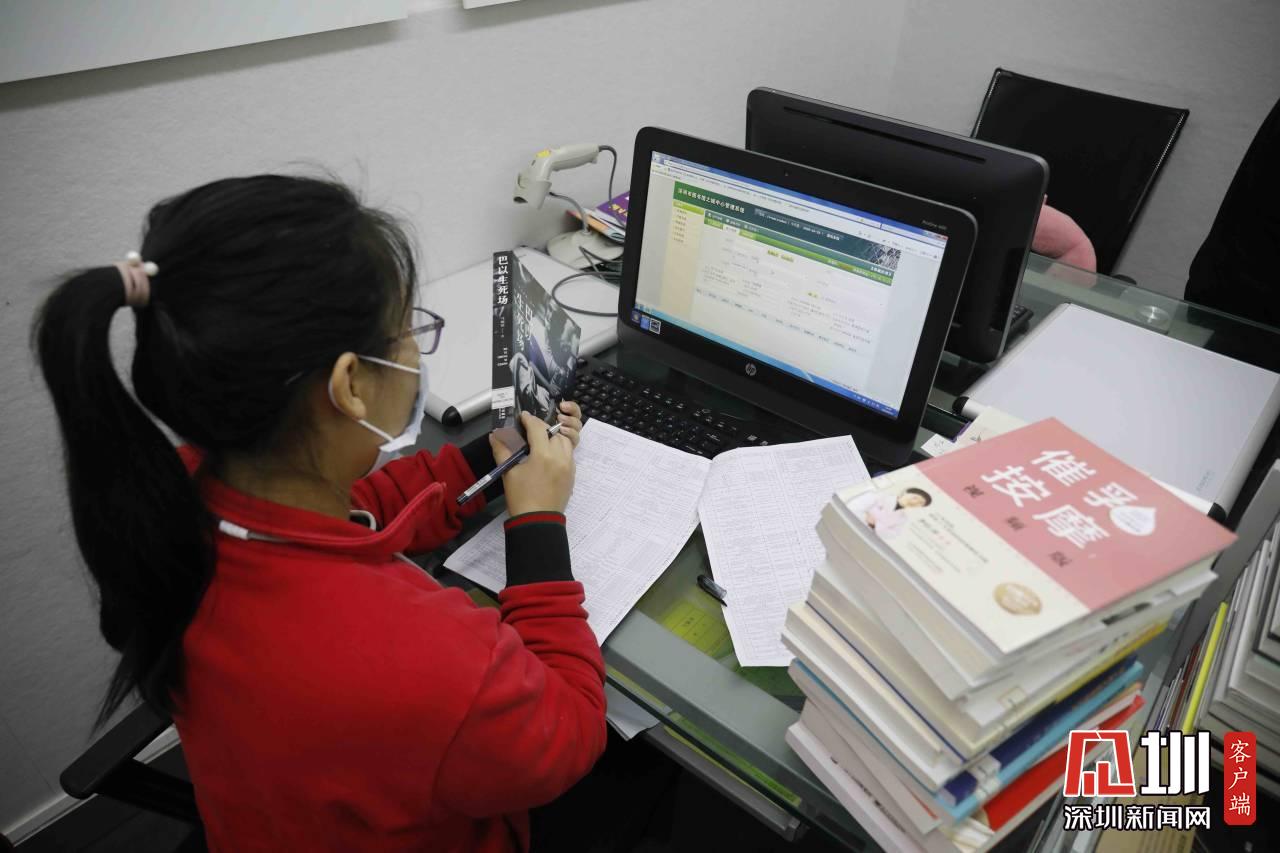 工作人員正在整理外館的書籍,每周外館的書籍會到福田圖書館交流一次。