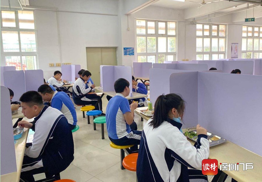深圳特區(qū)報(bào)2020年4月27日訊 4月27日,深圳高三、初三學(xué)子返校。食堂是校園防控工作的重點(diǎn),中午時(shí)分,學(xué)生就餐開始,實(shí)行錯(cuò)峰就餐、分區(qū)就餐。有的學(xué)校將每張餐桌用有機(jī)玻璃隔板分隔用餐區(qū)域,有的學(xué)校在空間足夠的條件下實(shí)行單人單桌,按號(hào)就座。