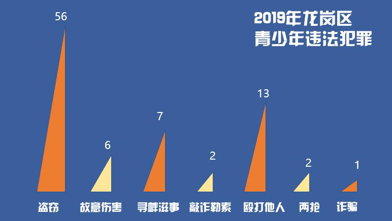 而2019年,龍崗區(qū)未成年人違法犯罪達(dá)到146宗(包括輟學(xué)青少年),其中包括盜竊、故意傷害、尋釁滋事、敲詐勒索、毆打他人、搶奪搶劫、詐騙等諸多形式。