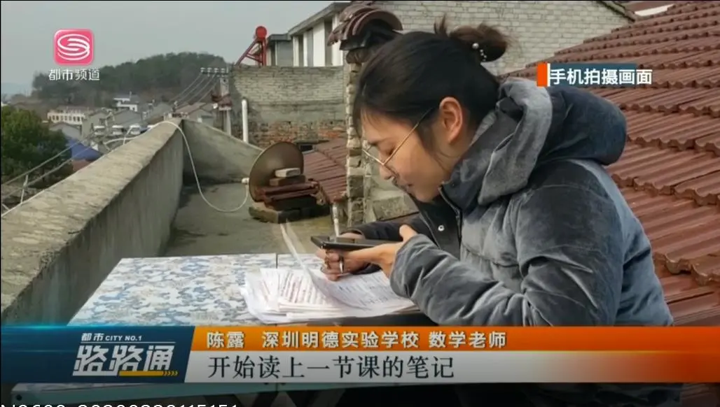 深圳中小學(xué)網(wǎng)課開課以來,廣大青年教師克服種種不利條件,變身教育主播,讓知識穿越屏幕直達(dá)學(xué)生心靈,深圳明德實驗學(xué)校的陳露老師就是其中一位典型代表。她因疫情滯留于湖北農(nóng)村,由于信號差,一開始為了錄制微課,白天她就帶好口罩跑到雜草叢生的山頂找信號,一塊木頭當(dāng)?shù)首?,坐下慢慢等上傳視頻,頂著寒風(fēng)一坐就是半天。線上教學(xué)正式開課后,由于設(shè)備和信號問題,陳老師只能采用QQ直播的方式給學(xué)生上課,為了保障語音效果,她把課堂搬到信號稍強的屋頂。上屋頂不是件容易的事,陳老師必須先爬一個陡峭的梯子,再匍匐穿過一個孔洞才能到達(dá)。一個天臺、一張折疊桌成了她的“三尺講臺”,一疊信紙成了她的“黑板”,一部手機成了她的“多媒體”。陳露老師每天坐在樓頂?shù)暮焙惋L(fēng)雪中,堅持完成直播課,保證學(xué)生正常的線上學(xué)習(xí)。