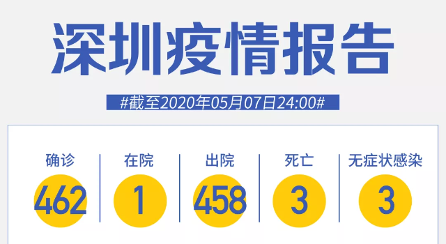 截至5月7日24時,深圳累計報告新冠肺炎病例462例。在院治療僅有1例。