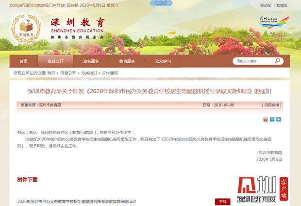見圳客戶端·深圳新聞網2020年5月9日訊(見圳客戶端、深圳新聞網記者 張玲)2020年,深圳中小學招生政策發(fā)生重大改變。根據深圳市《關于做好2020年普通中小學招生入學工作的通知》的規(guī)定,民辦中小學校招生必須搖號。