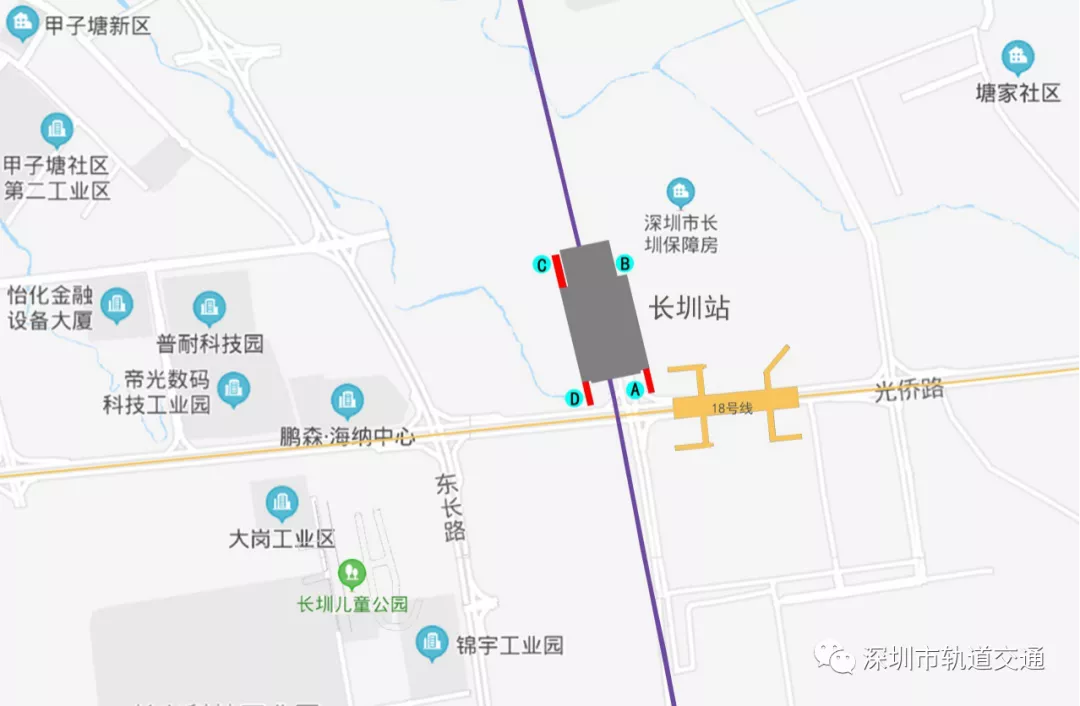 ▲圖1:長(zhǎng)圳站出入口分布示意圖