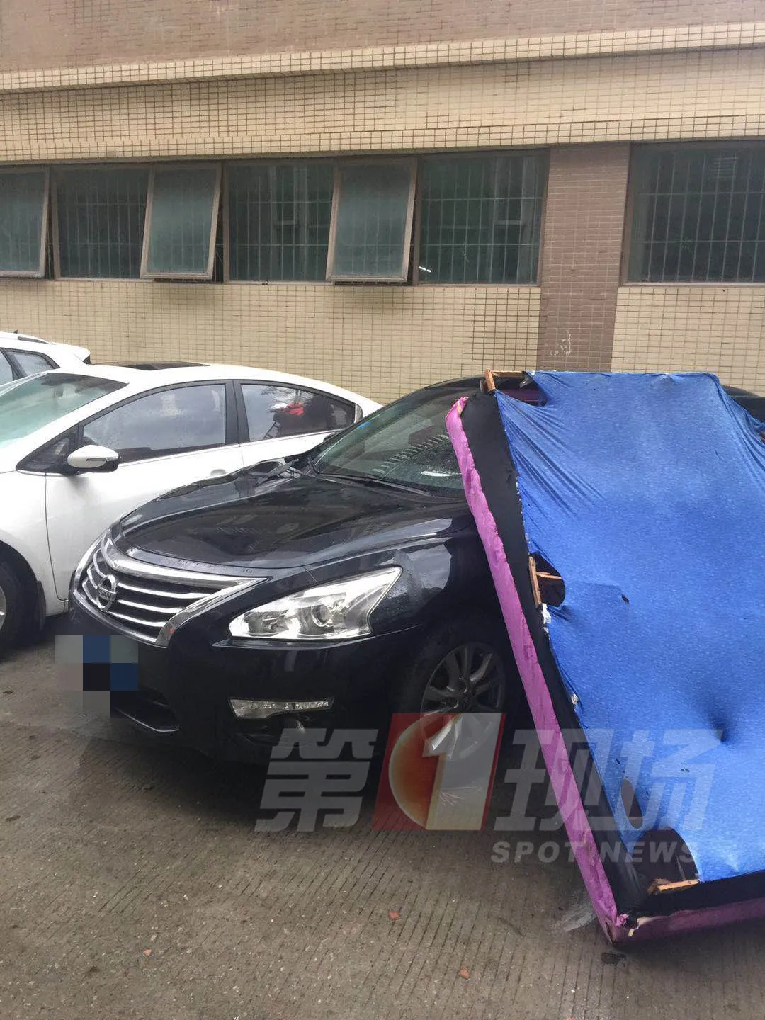 從監(jiān)控視頻來看,床墊是從這棟樓三樓的上方掉下來的,但具體是哪一戶,顯示得并不清楚。經(jīng)過昨晚警方的排查,發(fā)現(xiàn)五樓的租戶新買了床墊,并且,陽臺正對著樓下被砸的車。不過,五樓的租戶也表示這個床墊不是自己的。