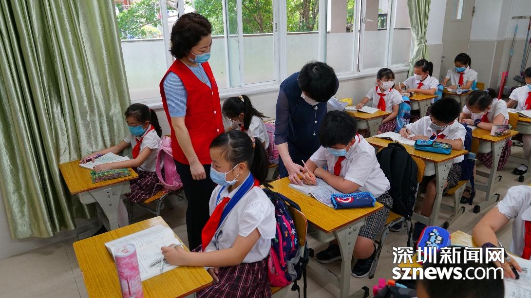 南山區(qū)委教育工委書記馬穎麗來到陽光小學(xué),了解學(xué)校的復(fù)學(xué)情況。在校領(lǐng)導(dǎo)的帶領(lǐng)下,馬書記參觀了食堂,并去到學(xué)校4-6年級的每一間教室,重點(diǎn)關(guān)注了孩子們在家進(jìn)行“空中課堂”的學(xué)習(xí)情況、復(fù)學(xué)第一天的心情感受、這段時間的心理狀態(tài)等;細(xì)微之處,馬書記還關(guān)注到了孩子的握筆姿勢、上課坐姿、書包重量等。在巡視過程中,馬書記對陽光小學(xué)的防疫環(huán)境創(chuàng)設(shè)、教室的良好通風(fēng)配置、走廊的定崗教師安排等細(xì)節(jié),也給予了肯定。
