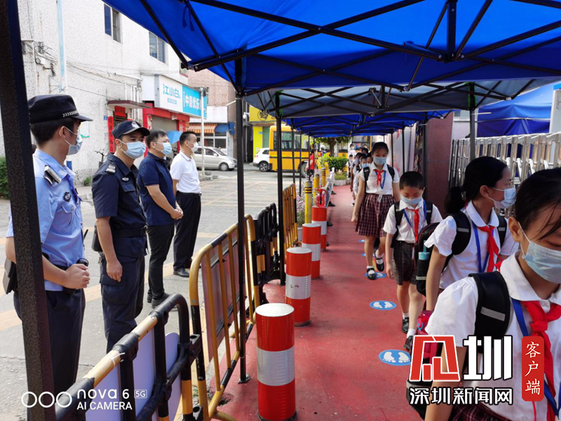 教育局、派出所、社康中心中心工作人員為學生入校護航。