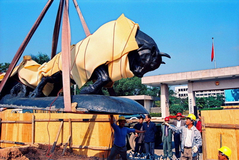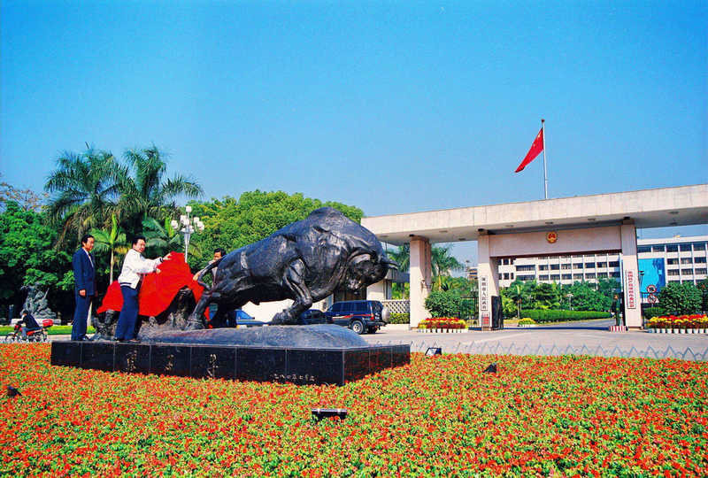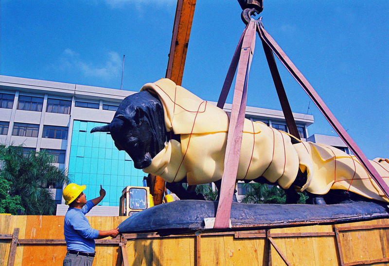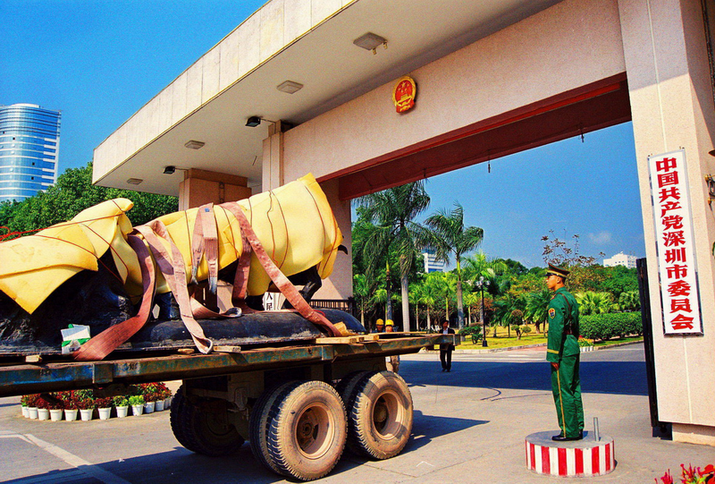 1999年2月6日,深圳“孺子牛”雕塑遷移到深圳市委大院門前。(組圖)(攝影:韋建誠(chéng))