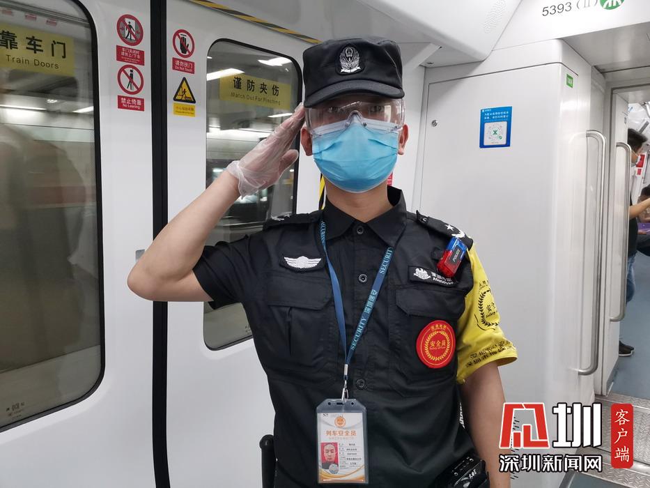 地鐵站內(nèi),一位工作人員整齊佩戴口罩與護(hù)目鏡,引導(dǎo)市民有序搭乘地鐵。