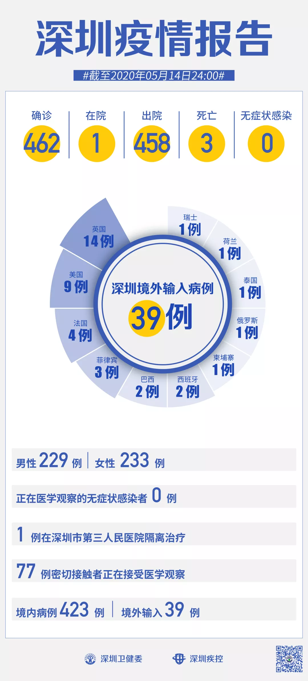 截至5月14日24時(shí),深圳累計(jì)報(bào)告新冠肺炎病例462例。