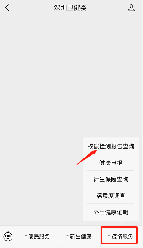 ②點(diǎn)擊“疫情服務(wù)”-“核酸檢測報(bào)告查詢”