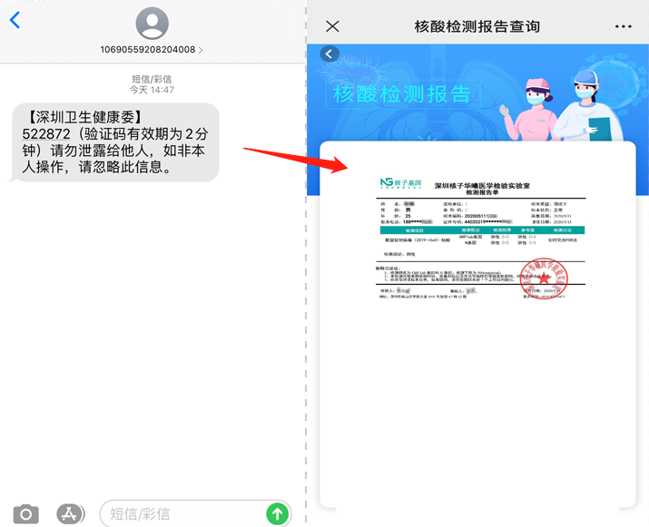 ④進(jìn)行短信驗(yàn)證后,即可查詢15天內(nèi)(從5月11日起)的核酸檢測報(bào)告