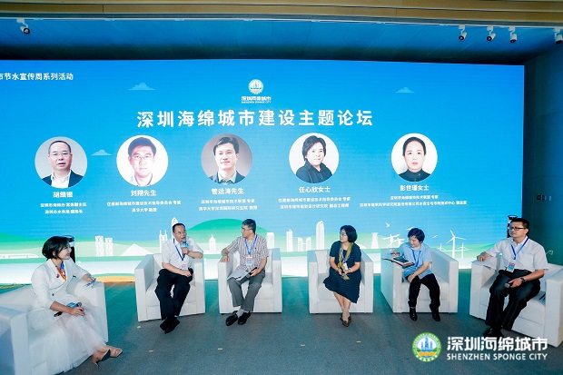 在活動的最后,深圳市海綿城市建設工作領導小組辦公室常務副主任胡細銀、清華大學教授劉翔、深圳市城市規(guī)劃設計研究院副總工程師任心欣、清華大學深圳國際研究生院教授管運濤以及深圳市建筑科學研究院股份有限公司水安全與市政技術副總監(jiān)彭世謹為大家?guī)砹酥黝}為“深圳海綿城市建設系統(tǒng)化全域推進展望”的分享。