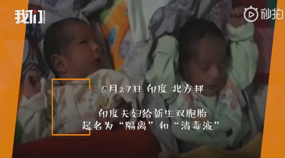 一對夫婦給新生雙胞胎起名為“隔離”和“消毒液”
