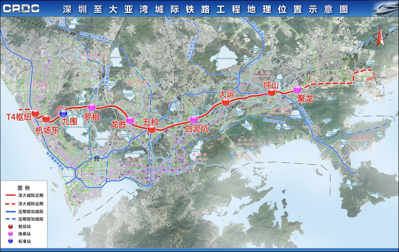 深圳市城市交通規(guī)劃設計研究中心受中國鐵路設計集團有限公司委托,開展深圳至大亞灣城際(以下簡稱“深大城際”)鐵路工程可行性研究社會穩(wěn)定分析專題研究。根據(jù)其發(fā)布的公示信息,深大城際鐵路規(guī)劃自寶安機場T4站至惠州大亞灣經(jīng)濟技術開發(fā)區(qū),途經(jīng)寶安區(qū)、龍華區(qū)、龍崗區(qū)、坪山區(qū)、惠州市大亞灣地區(qū),其中深圳段為近期實施工程,惠州段為遠期預留工程。