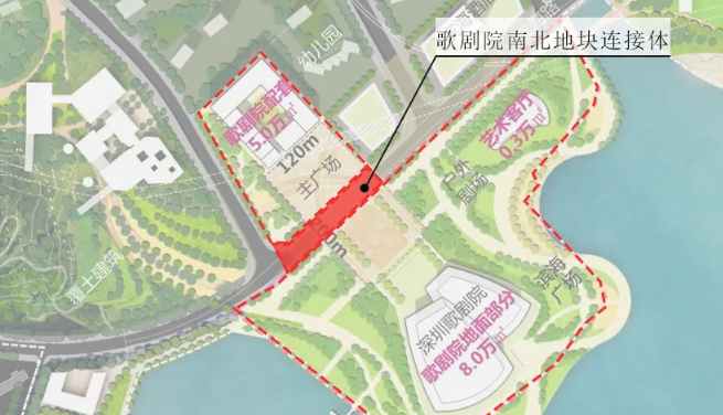 歌劇院分為南北區(qū)兩個(gè)地塊,南區(qū)為歌劇院主體功能地塊,北區(qū)為歌劇院配套功能地塊,南北區(qū)在地面被現(xiàn)狀望海路分割,在地下被擬建的望海路地下快速路分割,南北區(qū)被分割成獨(dú)立的兩個(gè)區(qū)域。