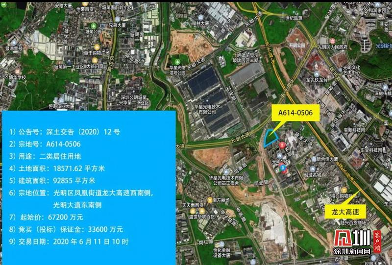 光明A614-0506宗地位于光明區(qū)鳳凰街道龍大高速西南側(cè)、光明大道東南側(cè),土地用途為二類居住用地,起始價為6.72億元,土地面積為18571.62平方米,建筑面積為9.29萬平方米。該宗地建設(shè)住宅類型為出售的人才住房,項目建成后宗地出售的人才住房銷售基準(zhǔn)售價不高于2.9萬元/平方米,最高售價不高于3.05萬元/平方米。