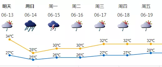 12-13日多云,偶有短時(雷)陣雨,天氣炎熱;13日夜間-14日有一次明顯風(fēng)雨過程;
