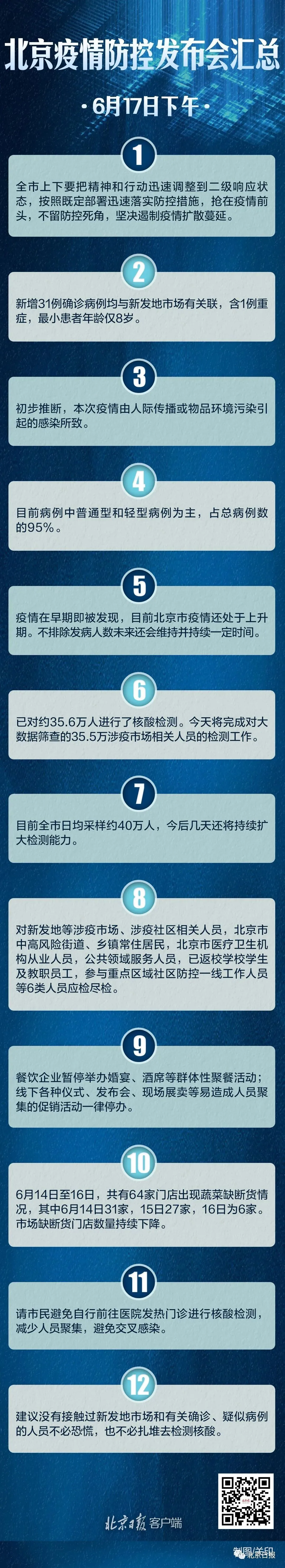 龐星火通報,6月16日0時至24時,北京市新增新冠肺炎確診病例31例,其中男性19例,女性12例,最小的8歲;北京戶籍6例,外省戶籍25例;豐臺區(qū)19例、大興區(qū)5例、海淀區(qū)3例、東城區(qū)3例、西城區(qū)1例;均與新發(fā)地市場有關(guān)聯(lián)。
