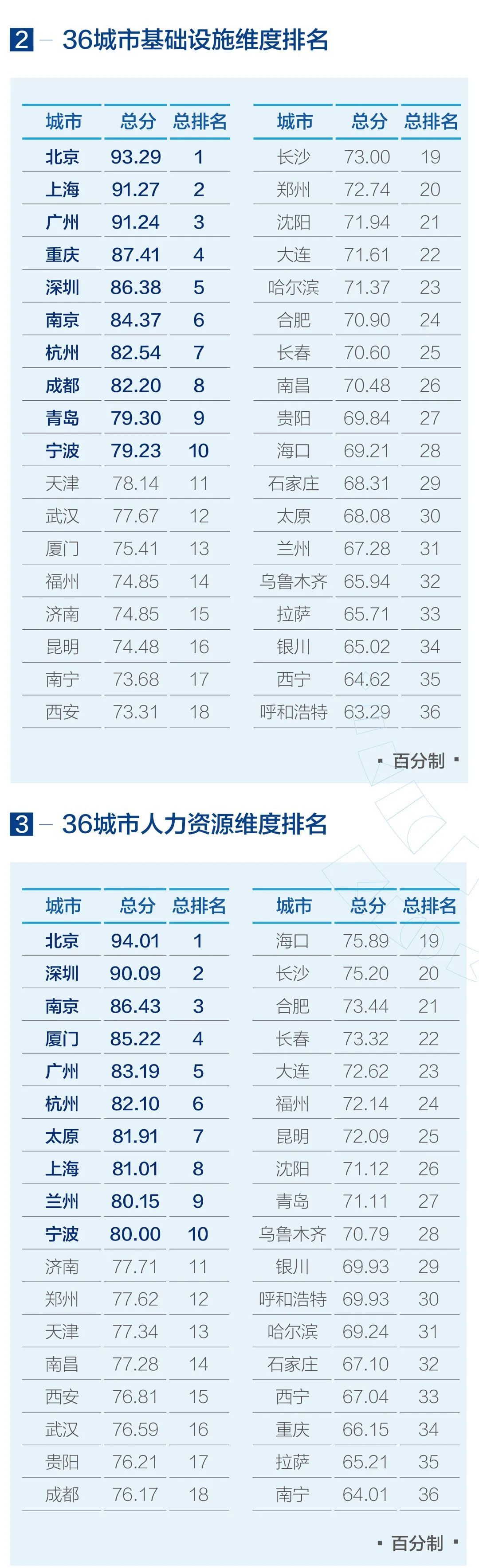 北京、上海、深圳、廣州、重慶、南京、杭州、成都、天津、寧波在綜合評(píng)價(jià)排名中位列前十。