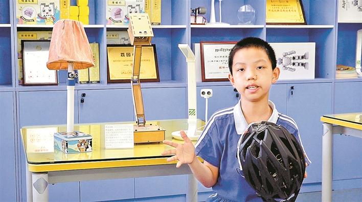 在周奕辰的爸爸看來,在發(fā)明創(chuàng)造的過程也開拓了孩子的思維能力,鍛煉了協(xié)作、溝通、表達(dá)等能力。如今,周奕辰是學(xué)校少先隊(duì)的大隊(duì)委,是紅領(lǐng)巾廣播站播音員,還加入學(xué)校創(chuàng)客社團(tuán)、美術(shù)社團(tuán)、管樂團(tuán)學(xué)習(xí),還經(jīng)常參加各類美術(shù)、管樂比賽,不但成績優(yōu)秀,綜合素養(yǎng)也全面發(fā)展。
