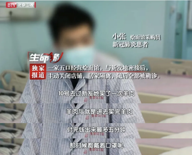 這感染的五口人里,父親是廚師,母親幫廚,大兒子二女兒在前廳幫忙,小兒子則作為采購(gòu)員每周定期去新發(fā)地市場(chǎng)買(mǎi)羊肉。