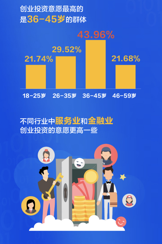 有了錢(qián),深圳人會(huì)投資什么?大調(diào)查發(fā)現(xiàn),深圳人在創(chuàng)業(yè)投資的選擇占比高達(dá)33.58%,比全國(guó)平均水平要高出12個(gè)百分點(diǎn),良好的創(chuàng)業(yè)環(huán)境和營(yíng)商環(huán)境給予了市民極強(qiáng)的信心。從不同年齡段來(lái)看,創(chuàng)業(yè)投資意愿最高的是36-45歲的群體,不同行業(yè)中,服務(wù)業(yè)和金融業(yè)創(chuàng)業(yè)投資的意愿更高一些。