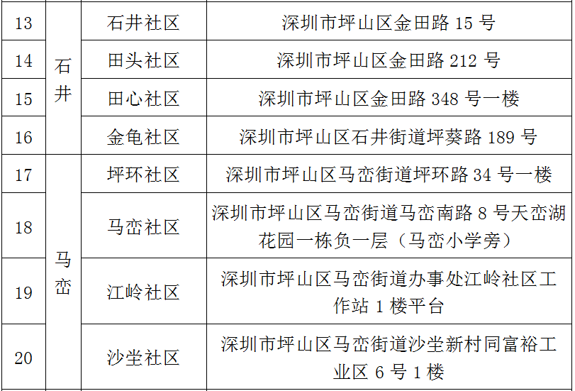 進(jìn)駐的社區(qū)公共服務(wù)站(黨群服務(wù)中心)名單