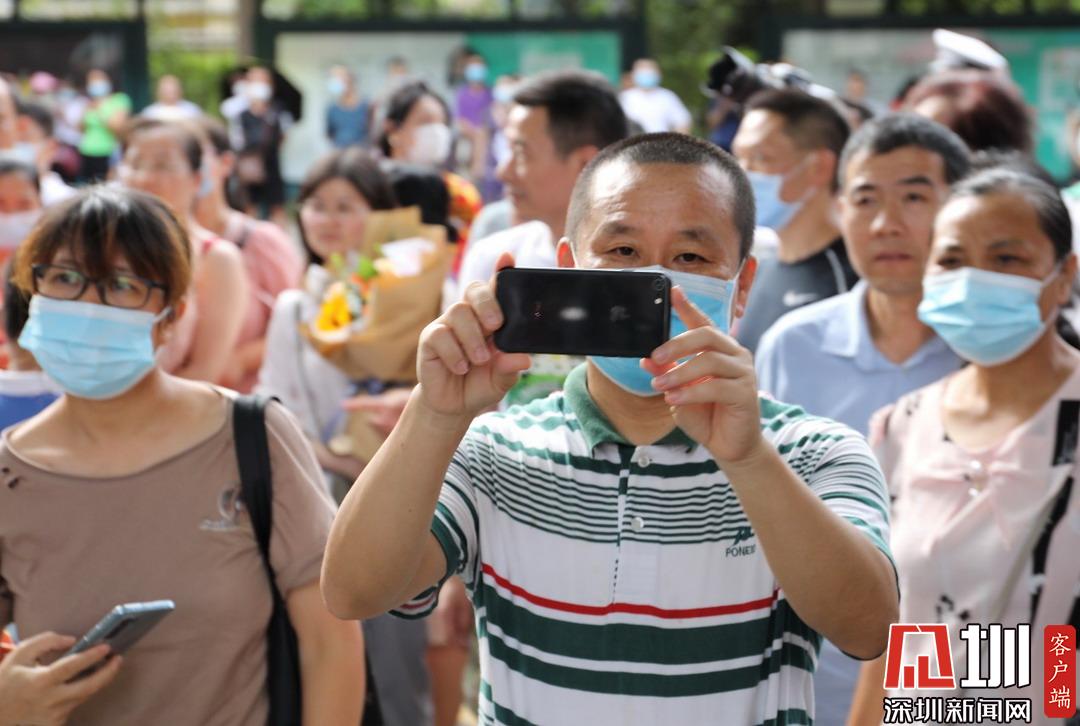 深圳高級(jí)中學(xué)考點(diǎn)外家長看見孩子笑臉相迎。