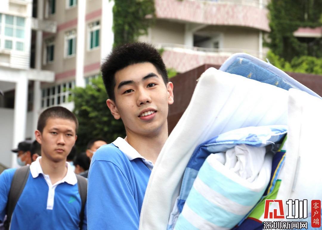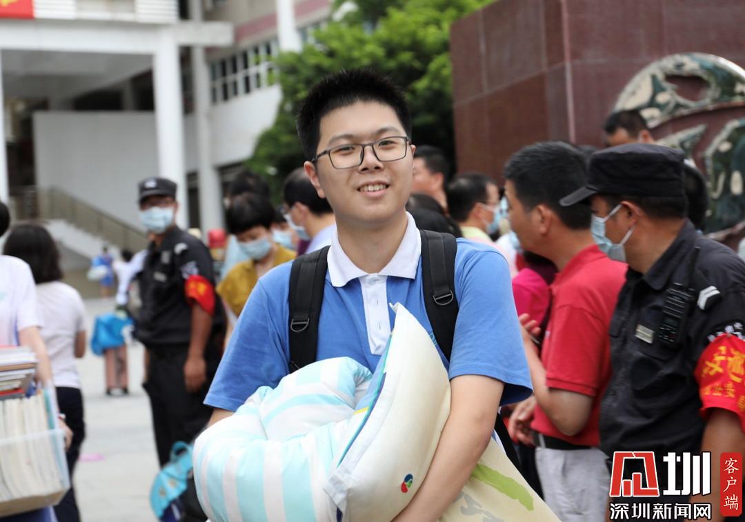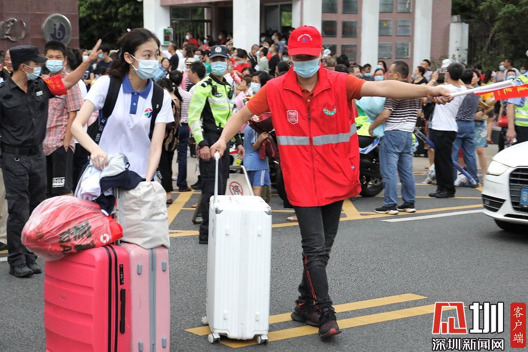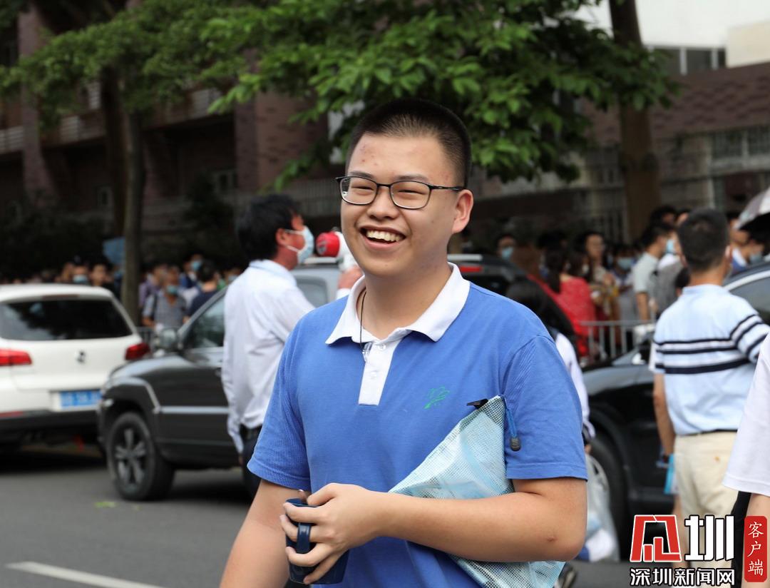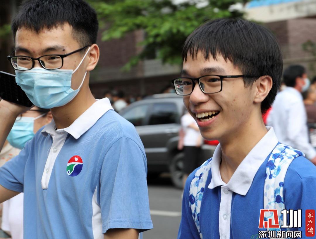 深圳高級(jí)中學(xué)考點(diǎn)外考生自信滿滿走出考場。