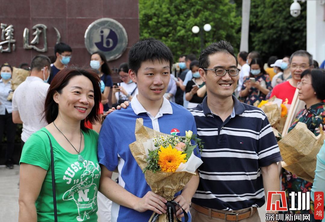 深圳高級(jí)中學(xué)考生走出考場收到父母鮮花。
