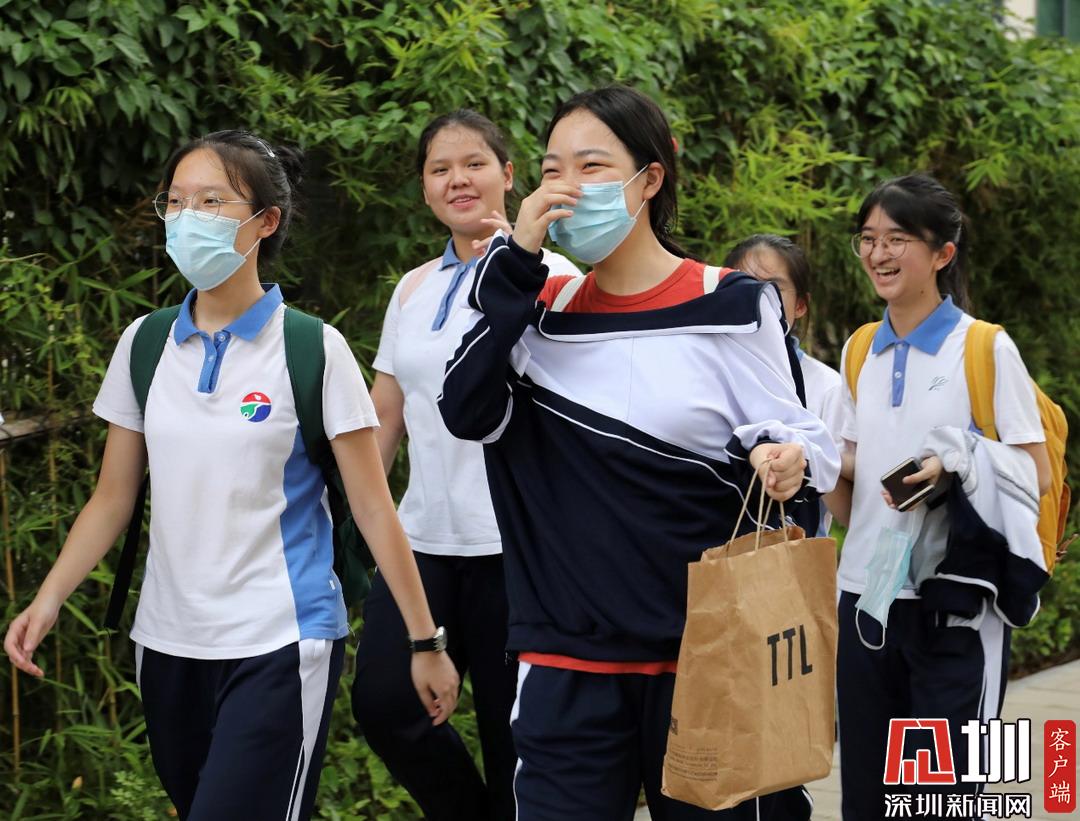 深圳高級(jí)中學(xué)考點(diǎn)外考生腳步輕盈走出考場,有說有笑。