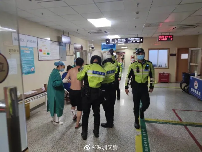 鐵騎一路沿著南坪快速往彩田路行駛,到達梅林關的位置后,跟福田交警匯合,采取前面開路后方護送的方式,花了15分鐘,就將病患護送到了市中醫(yī)院急診科。