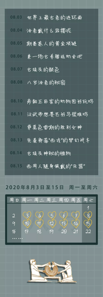 小小博物家,這個(gè)夏天我們從古埃及到古中國,為漢武帝尋馬,拜訪八歲的埃及法老,追尋最古老的連環(huán)畫……與傳統(tǒng)課堂不同,小小博物家十二講,營造充滿互動性的“沉浸式”課堂。
