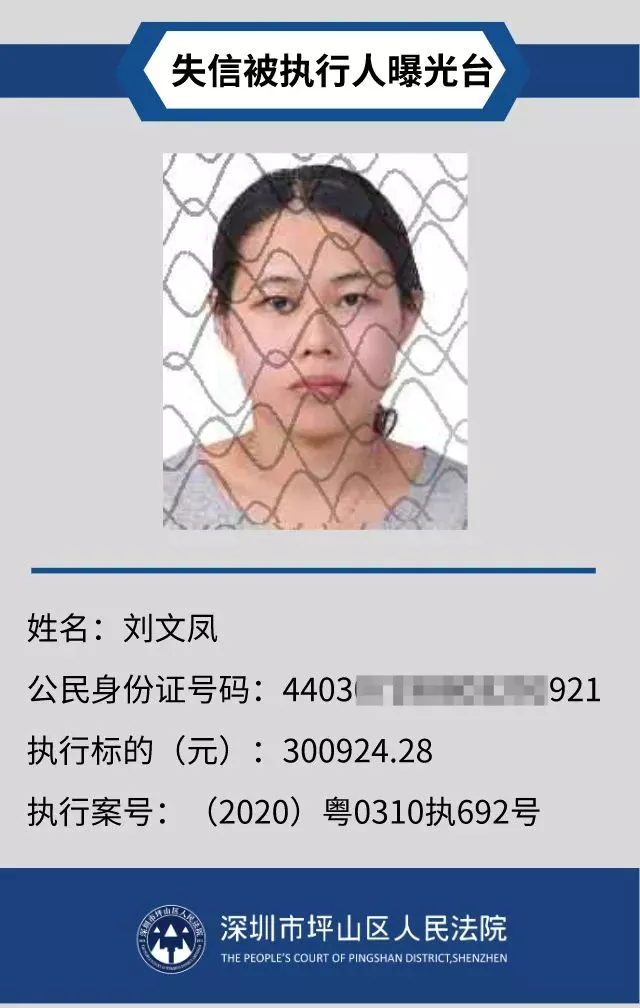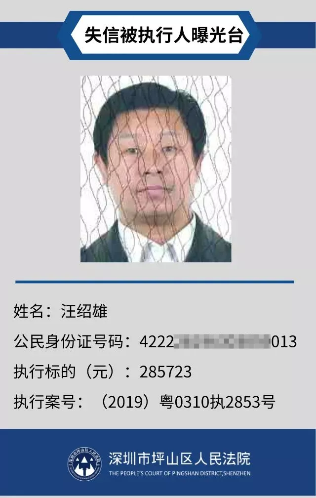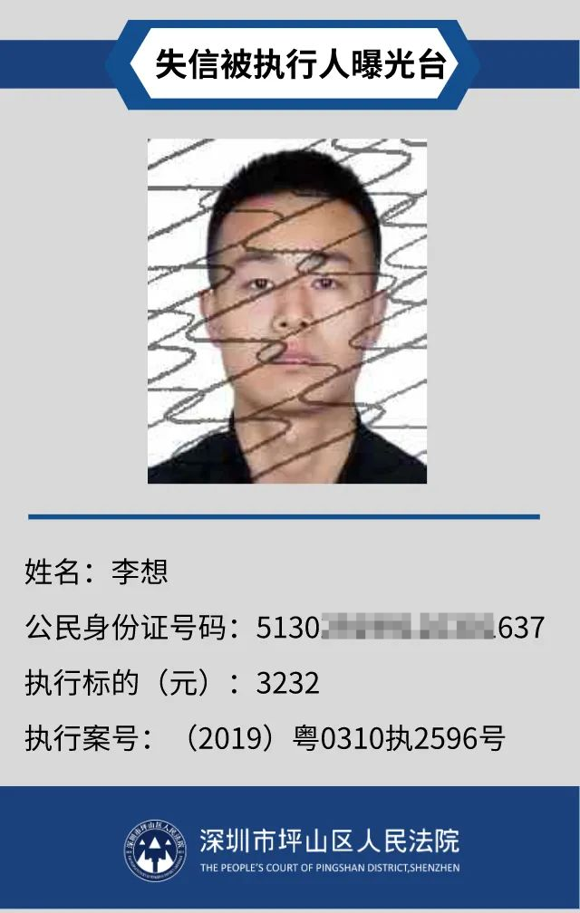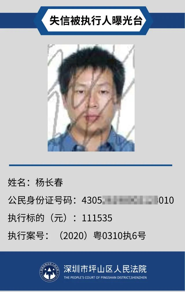 為督促被執(zhí)行人自覺履行生效法律文書確定的義務(wù),推進(jìn)社會(huì)誠信體系建設(shè),深圳市坪山區(qū)人民法院根據(jù)《中華人民共和國民事訴訟法》第二百五十五條、《最高人民法院公布失信被執(zhí)行人名單信息若干規(guī)定》第一條和第七條之規(guī)定,現(xiàn)對(duì)31名失信被執(zhí)行人予以公布。名單信息根據(jù)案件結(jié)案情況及時(shí)更新,歡迎舉報(bào)失信被執(zhí)行人行蹤及財(cái)產(chǎn)線索,相關(guān)信息核實(shí)請(qǐng)聯(lián)系深圳市坪山區(qū)人民法院執(zhí)行局。