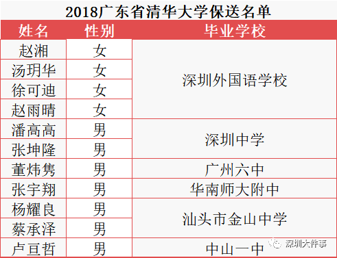 2018年廣東省清北保送共25人,深圳14人,深外占8人;