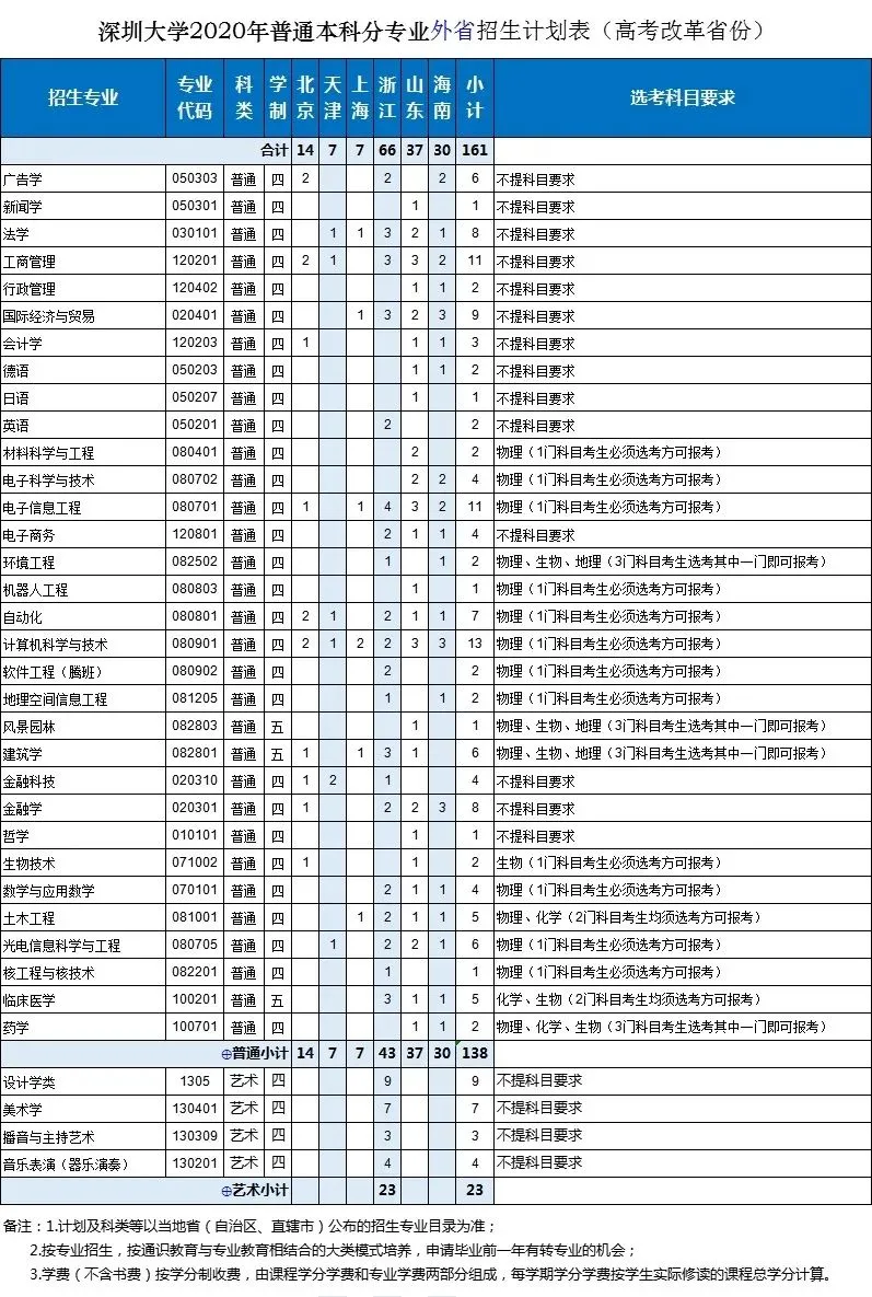 深圳大學(xué)2020年面向全國(guó)29個(gè)?。ㄗ灾螀^(qū)、直轄市)招生,招生總規(guī)模保持不變,總計(jì)劃為6750人。增加天津這1個(gè)招生省份;增加廣東省外招生計(jì)劃;增加金融科技、機(jī)器人工程、學(xué)前教育(師范)3個(gè)招生專業(yè);增加軟件工程(騰班)、心理學(xué)(師范)2個(gè)專業(yè)方向。