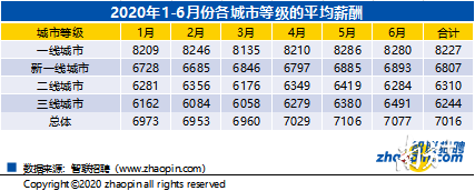 雖然求職競爭激烈,但一線城市應(yīng)屆生起薪水平高于其他城市,也令不少畢業(yè)生更青睞選擇。《報告》表明,3月份之后應(yīng)屆生薪酬有所增加,二季度各月份的應(yīng)屆生起薪也在逐漸提高。分城市等級來看,一線城市應(yīng)屆生平均起薪最高,為8227元,而新一線、二線、三線城市薪酬逐漸遞減,分別為6807、6310和6244元。從趨勢變動來看,3月之后一線和新一線城市應(yīng)屆生薪酬變動較小,而二線、三線城市薪酬上升明顯。
