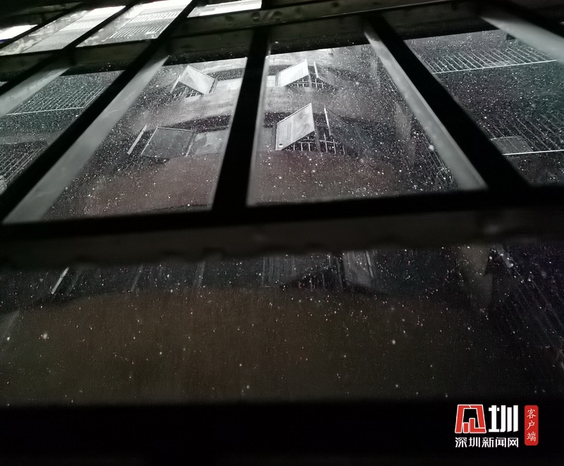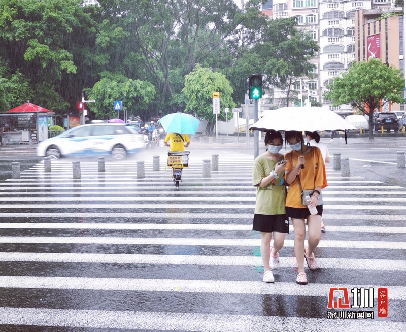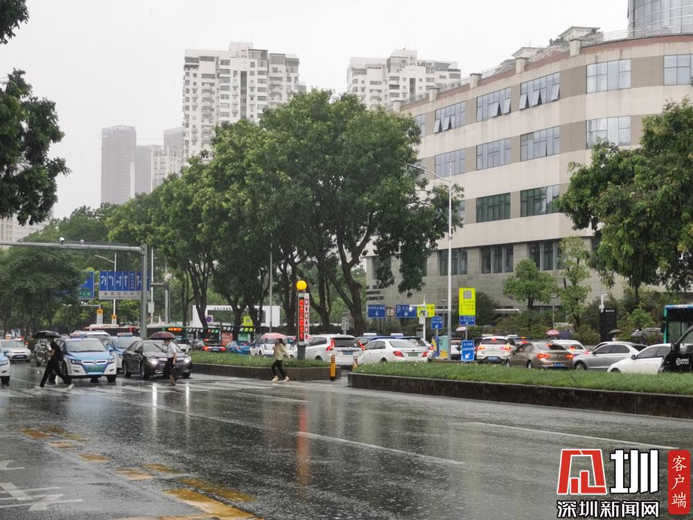 大雨如注,福田區(qū)蓮花北社區(qū)的泳池蒙上一層水霧,看不清楚。(記者張玲 攝)