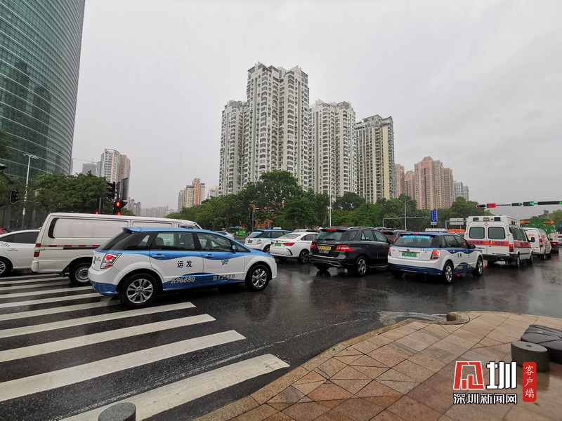 暴雨初歇,汽車行駛在蓮花路上。(記者張玲 攝)