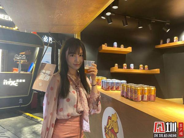 龍珠燈泡照亮夜空,震耳的音樂,橡皮桶木紋設(shè)計風格的啤酒巴士和酒桌吧臺……直播第一站來到正在萬象城舉行的活動“日落酒場”現(xiàn)場。9月4日至10月4日每周五至周日晚,萬象城把啤酒巴士“開”進下沉廣場。逛街累了的市民,在汩汩噴泉旁小憩,讓耳朵沉浸在樂隊帶來的聽覺盛宴中,從清新民謠到激情搖滾,再來一杯飄著酒花香氣的精釀啤酒,仿佛置身在樸實復(fù)古的高街酒場?!奥牭揭魳仿曈悬c大,好奇有什么活動,”住在附近的市民屈先生,循著音樂聲來到現(xiàn)場,還免費領(lǐng)取了一杯啤酒品嘗,覺得很開心現(xiàn)場氣氛很熱鬧。