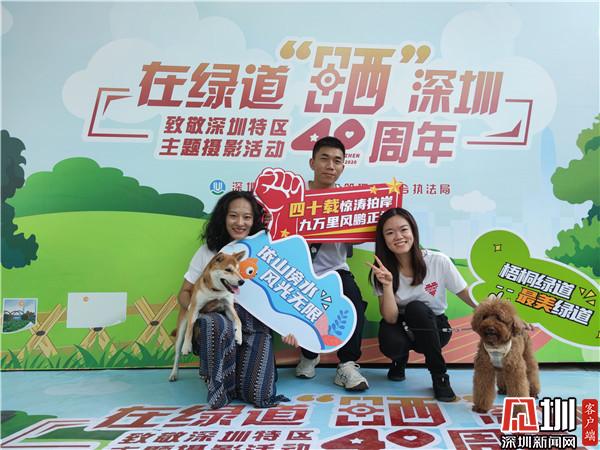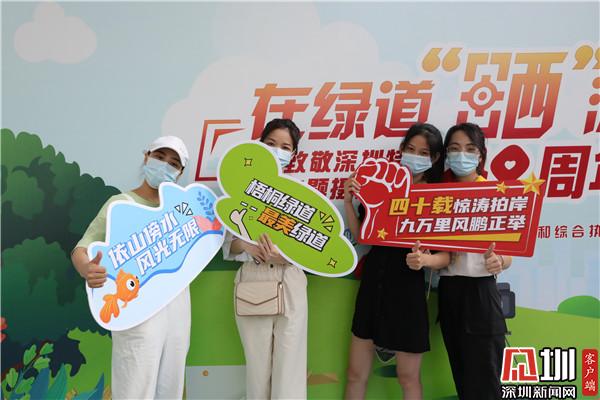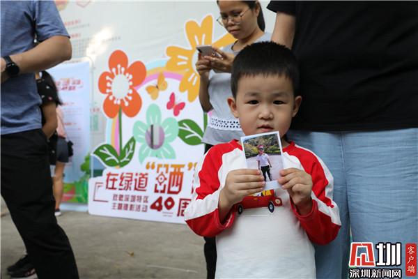“我是在‘i羅湖’公眾號(hào)上看到消息,說是周日梧桐綠道會(huì)舉辦攝影活動(dòng),于是帶著家人來游玩拍照”。羅湖市民周先生說。這里有深圳和綠道元素的標(biāo)語、頭箍、合影異形牌等道具,拍照打卡很有紀(jì)念意義,而且還有專業(yè)的攝影師和智能照片打印機(jī)?!拔覀円患胰撕芫脹]有合影了”拿著剛打印出來的照片,周先生看著家人笑得很開心。