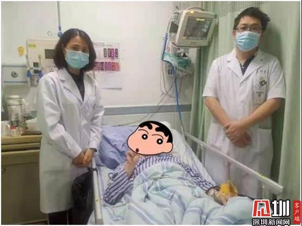 王威回憶:“做了7組心肺復(fù)蘇后,劉先生似乎曾有輕微的反應(yīng)。我后來(lái)也沒(méi)敢松懈,一直堅(jiān)持做到醫(yī)護(hù)人員來(lái)到現(xiàn)場(chǎng)?!?/p> 病情危急 入院搶救后轉(zhuǎn)危為安 16:43分左右,羅湖醫(yī)院急診科醫(yī)護(hù)人員接到120指揮部出車通知后,以最快速度到達(dá)了現(xiàn)場(chǎng),立即開(kāi)始接手現(xiàn)場(chǎng)救治。當(dāng)時(shí),王威已經(jīng)為劉先生做了7分鐘心肺復(fù)蘇。醫(yī)護(hù)人員迅速評(píng)估劉先生生命體征,發(fā)現(xiàn)他仍無(wú)呼吸、無(wú)心跳,立即繼續(xù)心肺復(fù)蘇并即時(shí)進(jìn)行心電監(jiān)護(hù),建立靜脈通路,開(kāi)放氣道、球囊輔助通氣并注射腎上腺素。心電監(jiān)護(hù)提示室顫,在除顫2次后,劉先生恢復(fù)了自主呼吸和心跳,被送往羅湖醫(yī)院急診科進(jìn)一步救治。