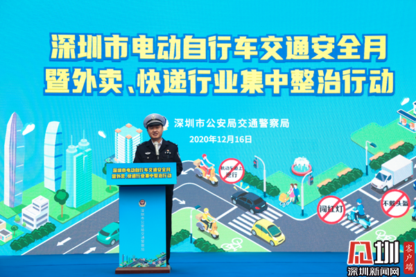見圳客戶端·深圳新聞網(wǎng)12月16日訊(記者 郭含笑 通訊員 劉明)12月16日下午,深圳交警在羅湖區(qū)東門文化廣場舉行深圳市電動(dòng)自行車交通安全月暨外賣、快遞行業(yè)集中整治行動(dòng)啟動(dòng)儀式?,F(xiàn)場邀請(qǐng)全市外賣、快遞企業(yè)代表參加啟動(dòng)儀式。深圳市交警局局長徐煒、深圳市交警局副局長馮新毅及相關(guān)領(lǐng)導(dǎo)班子出席了啟動(dòng)儀式。