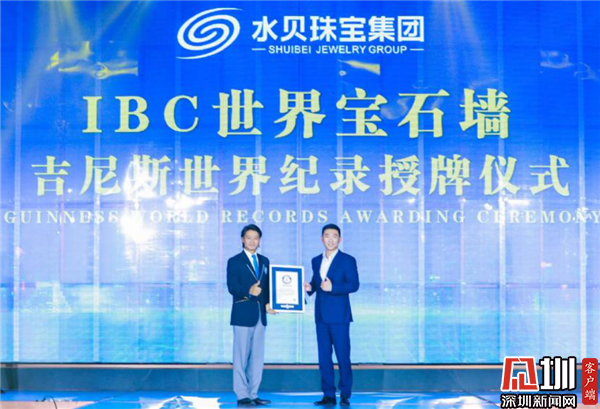 在本次“天工精制”見證盛典活動(dòng)上,舉行了IBC世界寶石墻吉尼斯世界紀(jì)錄授牌儀式,水貝珠寶集團(tuán)副總裁盧森榮從吉尼斯世界紀(jì)錄官方認(rèn)證官楊紹鵬手中接過認(rèn)證證書,標(biāo)志著IBC世界寶石墻挑戰(zhàn)世界“面積最大,珠寶種類最豐富”的寶石壁畫紀(jì)錄成功。全場(chǎng)嘉賓一同親歷“世界之最”的誕生,高端賽事見證國(guó)際殊榮,IBC世界寶石墻閃耀而來(lái),這件劃時(shí)代的藝術(shù)作品成為世界珠寶文化的傳播載體與精神堡壘,是一個(gè)偉大的壯舉。