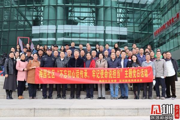 見圳客戶端·深圳新聞網12月18日訊(記者 彭桂紅 劉晨 通訊員 陳秋珊 紀楚苗)12月17日下午,深圳市羅湖區(qū)清水河街道梅園社區(qū)黨委組織社區(qū)各黨支部書記、老年人協(xié)會黨支部黨員一行30余人,來到深圳報業(yè)集團參觀交流黨建工作。自2020年8月至2021年底,深圳新聞網黨總支部掛點聯(lián)系羅湖區(qū)清水河街道梅園社區(qū),雙方結對共建,當天,雙方在深圳報業(yè)集團開展了一場“不忘初心話傳承,牢記使命說擔當”主題黨日活動。市紀委監(jiān)委駐報業(yè)集團紀檢監(jiān)察組組長、報業(yè)集團黨組成員陳鵬出席活動。