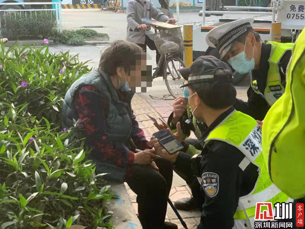 天色漸晚,此時(shí)深圳的交通處于晚高峰車多緩行狀態(tài),民警考慮到賀老太太獨(dú)自坐在路邊存在安全隱患。于是民警把賀老太太攙扶上警車,帶著賀老太太一路從濱河大道至漁民村-和平路-嘉賓路-金光華-火車站一帶的城中村查找線索。同時(shí),民警還向110指揮中心和附近多個(gè)派出所反映該情況,看是否有人報(bào)警尋找走失的老太太。