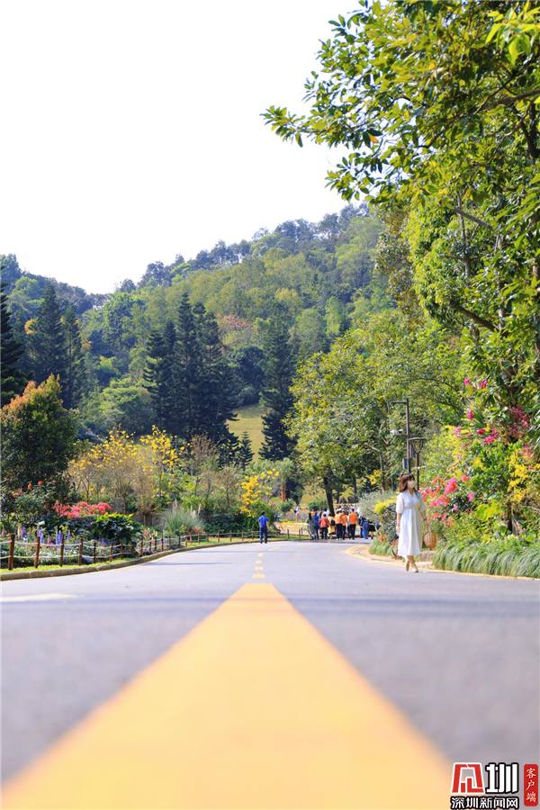 入口的公路兩旁也種滿了花,抬頭看到遠(yuǎn)處的山和天空連在一起,心情也會(huì)變得格外愉悅。