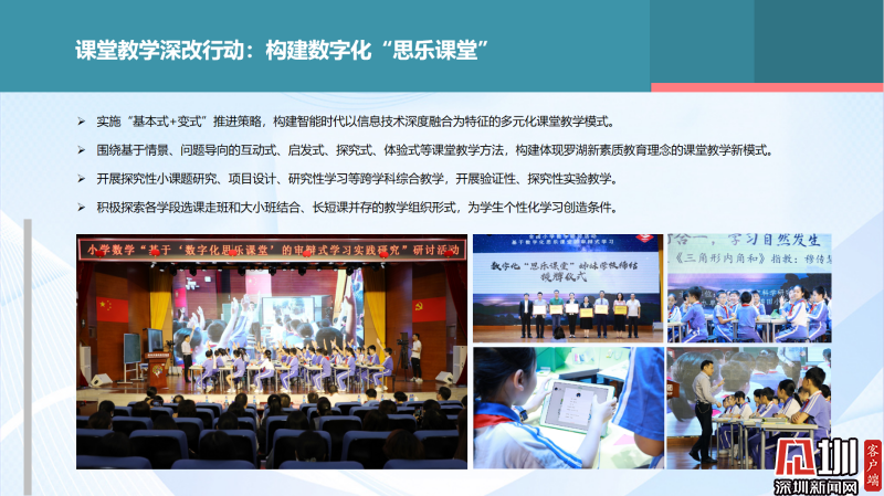 羅湖區(qū)推出的數(shù)字化“思樂(lè)課堂”相關(guān)課題,2020年被《中國(guó)教師報(bào)》認(rèn)定為中國(guó)教育課堂改革十大樣本。“思樂(lè)課堂”充分發(fā)揮數(shù)字技術(shù),提升課堂的邏輯性、趣味性、交互性、有效性,從而有效激發(fā)學(xué)生的學(xué)習(xí)潛能,使得深度學(xué)習(xí)在課堂中真實(shí)發(fā)生。目前,這種模式影響力也在不斷擴(kuò)大,走向全國(guó)。4月8日,深圳市錦田小學(xué)、布心小學(xué)與來(lái)自陜西、江西的學(xué)校締結(jié)了數(shù)字化“思樂(lè)課堂”姊妹學(xué)校。近期,第二批數(shù)字化“思樂(lè)課堂”的學(xué)校和教師加入這個(gè)課改項(xiàng)目。